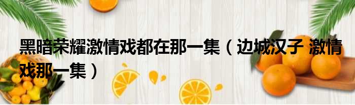 黑暗荣耀激情戏都在那一集(边城汉子 激情戏那一集)