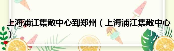 上海浦江集散中心到郑州(上海浦江集散中心)