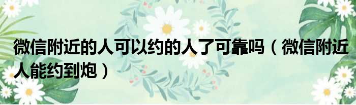 导读 大家好,今天小六子来为大家解答以下的问题,关于微信附近的人可以约的人了可靠吗,微信附近人能约到炮这个很多人还不知道,现在让我们一起