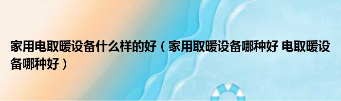 3、在家庭中有着不同的成员,所以在选择取暖设备是一定要注意,那么小编就来介绍一下家用取暖设备哪种好?电取暖设备哪种好? 家用取暖设备哪种好? 1.空调,取暖的优势是简单方便,投入成本不高,制热速度较快。