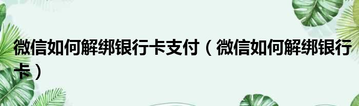 微信如何解绑银行卡支付(微信如何解绑银行卡)