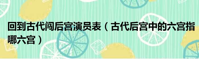 回到古代闯后宫演员表(古代后宫中的六宫指哪六宫)