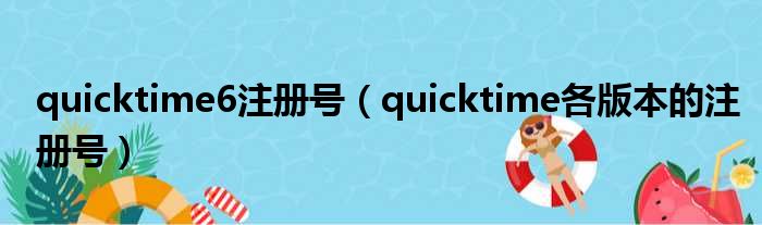 导读 大家好,今天小六子来为大家解答以下的问题,关于quicktime6注册号,quicktime各版本的注册号这个很多人还不知道,现在让我们一起来看看吧!