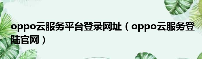 oppo云服务平台登录网址(oppo云服务登陆官网)