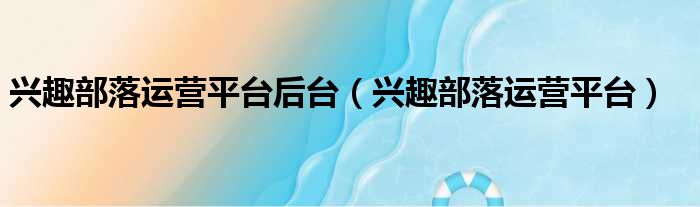 兴趣部落运营平台后台(兴趣部落运营平台)