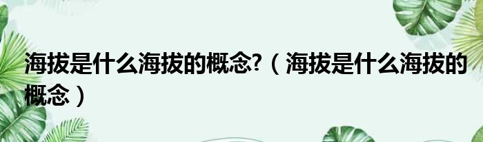 海拔是什么海拔的概念?(海拔是什么海拔的概念)