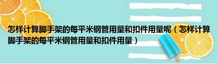 怎样计算脚手架的每平米钢管用量和扣件用量呢(怎样计算脚手架的每平米钢管用量和扣件用量)