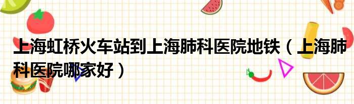 上海虹桥火车站到上海肺科医院地铁(上海肺科医院哪家好)