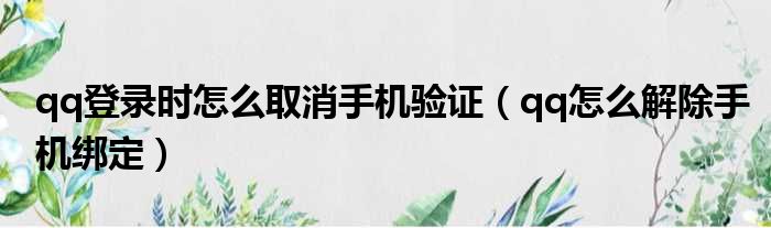 qq登录时怎么取消手机验证(qq怎么解除手机绑定)