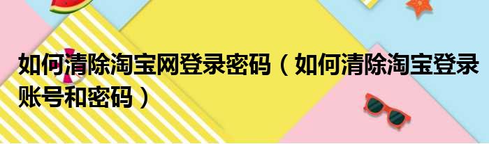 如何清除淘宝网登录密码(如何清除淘宝登录账号和密码)