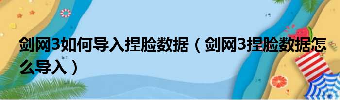 剑网3如何导入捏脸数据(剑网3捏脸数据怎么导入)