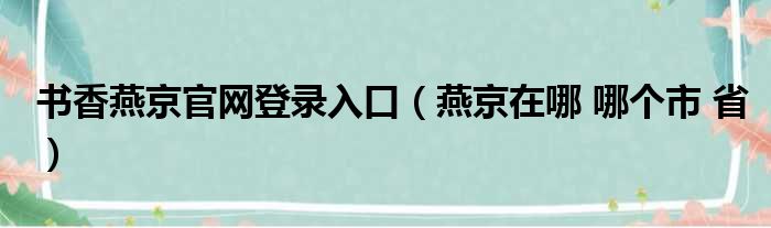 书香燕京官网登录入口(燕京在哪 哪个市 省)